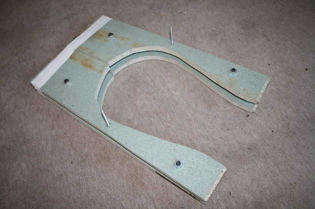 El sostenedor de la forma está hecho de dos capas de madera barata. Para poner presión en la altura entera de la madera, las capas tienen que ser separados