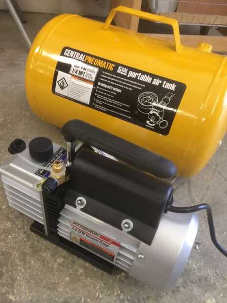 Después de un tiempo con esta máquina, decidí que una actualización al sistema de vacío estaba en orden. Una aspiradora de taller sólo serán capaces de proporcionar sobre 5inHg de vacío, mientras un bomba/tanque dedicado podrán tirar 25inHg o más. Esto resulta en más tirones en su máquina, ya que la succión del plástico contra su forma se vuelve mucho más fuerte.