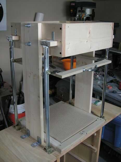 Este montaje bien trabajado plástico delgado, con la fricción de los deslizadores contra el riel lo suficiente como para mantener la estructura de plástico en su lugar al lado del horno de la calefacción. Plástico más grueso resultó un poco más pesado, y finalmente he añadido un conjunto de resortes y S-ganchos, montados en la caja del horno, que sostienen la estructura de plástico en su lugar durante el proceso de calentamiento (foto 5).