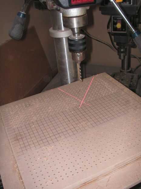 - La parte superior, otro 3/8" espesor pieza de MDF con unos cien agujeros perforados en él.