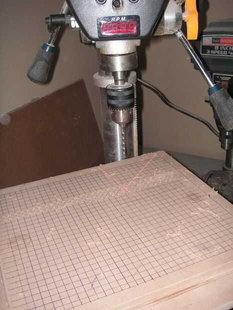 No pegar la parte superior de la placa base y marco antes de perforar estos agujeros. MDF tiene una tendencia a la viruta hacia fuera y debe girar la parte superior después de la perforación para limpiar los orificios que puedan bloquearse.
