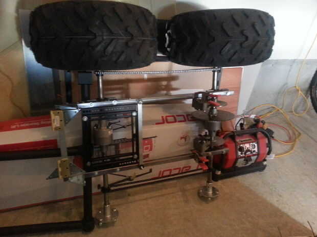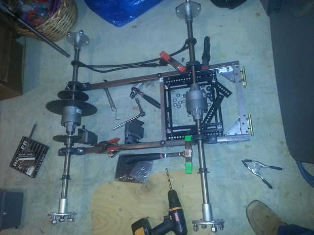 La rueda dentada en el eje es la rueda dentada de cadena #41. Si te fijas bien, verás tengo temporalmente sujeta las pinzas de freno en su lugar.