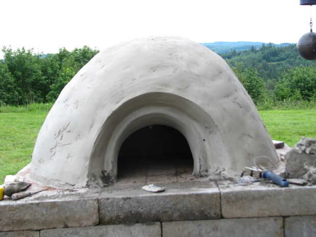La 3ª y última capa del horno era una capa de 2" de la arcilla. Esta cáscara exterior fue capas hasta de la misma manera que las otras dos capas con mucho cuidado de no empujar la arcilla en la capa de aislamiento.