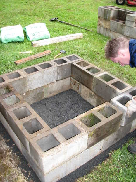 Sobre esta base puse un cuadrado de la 8 "x 8" x 16 "concreto bloques, tres bloques a un lado.