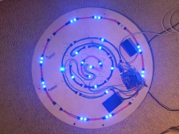 * El tiempo se muestra en la figura: 4:35 (elanillo externo con 4 segmentos de LED iluminado; 2 º anillo con 3 LED iluminado; y 3 º anillo con 5 LED iluminado)