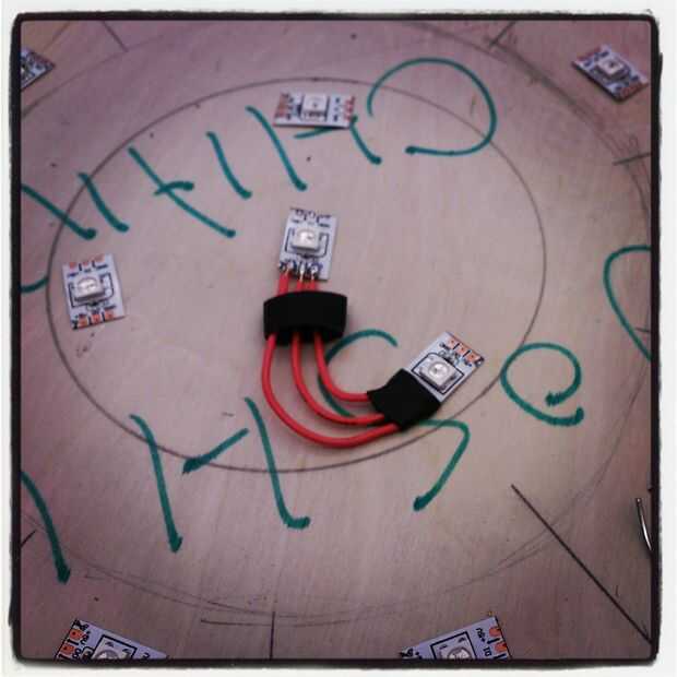 Soldar los cables en los LEDs, LEDs del mismo anillo de conexión en una tira, dejo una tira abierto para Arduino.
