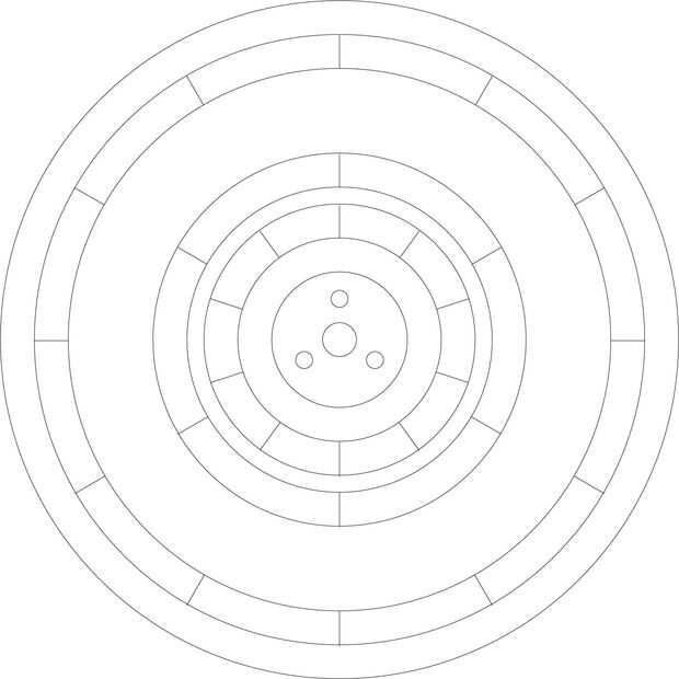 Dividir uniformemente la madera contrachapada, respaldo del reloj en 12, 6 y 10 segmentos.