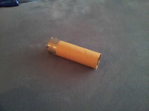 No quería arriesgarse, así que añadido otro pedazo de cilindro de cartón para que la linterna no se caiga a través. Para construir la medida del cilindro el la longitud de la fuente de luz en la parte inferior de la estructura de soporte. Cortar el cilindro de cartón para que la longitud. Sellar un extremo del cilindro completamente con cinta adhesiva y pegar el otro extremo a la estructura de soporte para que los agujeros se sientan unos de otros. Para fijar con seguridad cilindro y estructura utilicé tiras muy delgadas de cinta pegado (profundo) dentro del cilindro y a través de la estructura en el otro extremo.