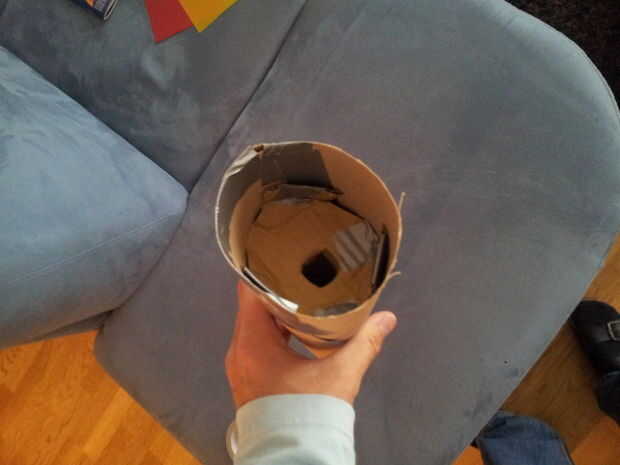 Luego usar rayas de cinta adhesiva para pegar las solapas hacia el interior pared del código (es decir, el cuerpo de la antorcha).