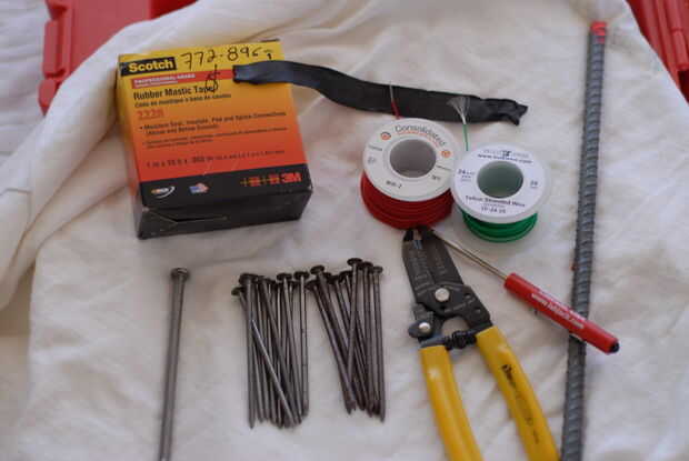No es preciso aquí, así que siéntete libre sustituir materiales similares. Por ejemplo, usé paquetes de clavos antes de que pudiera encontrar un clavo de hierro grande. Sólo tenga cuidado de lo que utilizas es el hierro sin recubrimiento, muchos objetos de hierro en la tienda de hardware serán revestidos con un polímero o zinc (galvanizado). Independientemente de donde encontrar los metales, asegúrese de que el cobre y el hierro tienen las capas de oxidación limpiadas - usé Al2O3 abrasivos para limpiar el cobre y ácido clorhídrico para la plancha.