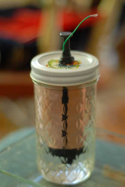 - Ahora, llenar el tarro de masón con 20% KOH u otro electrolito alcalino y lugar el tarro de masón que acaba de crear en la solución de montaje de la tapa y sellar la jarra - debe parecerse a la foto 3