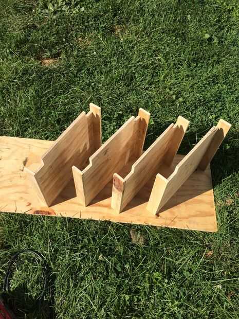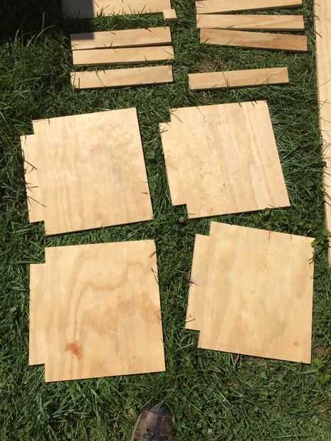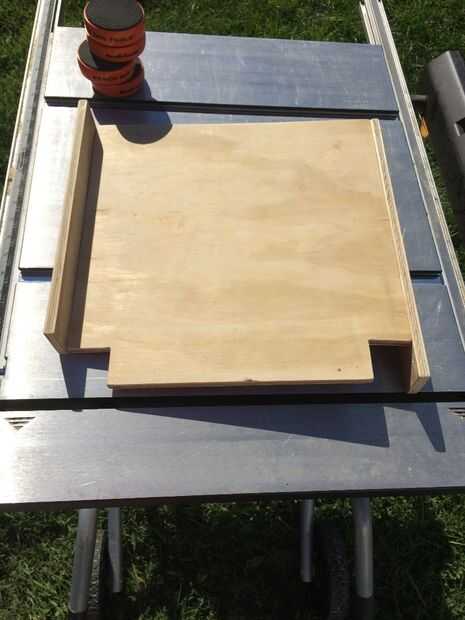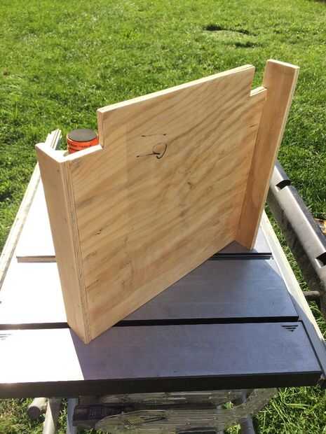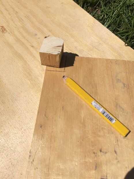 En los estantes de 14 "x 14" marqué las piernas para ser recortados hacia fuera. Estas muescas están en el mismo lado para acomodar las piernas en ese lado de los estantes.