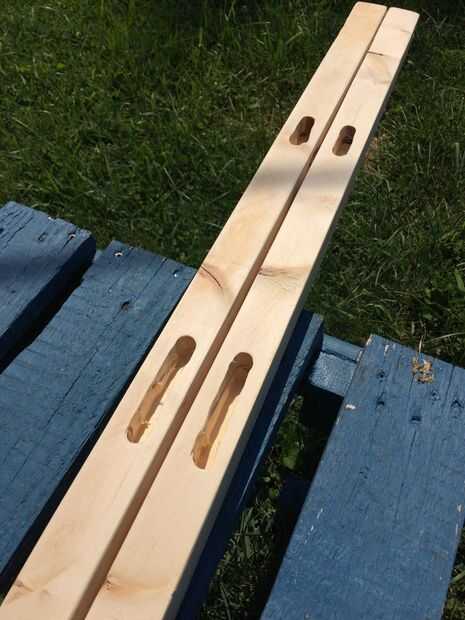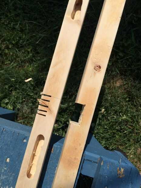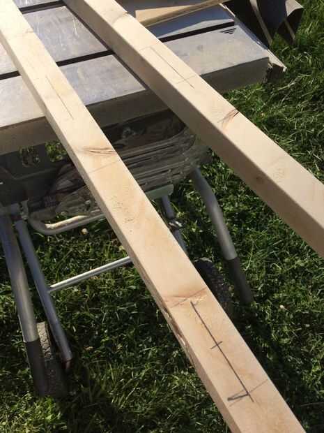 En las piernas, medida y corte y había cincelado medio ranuras para el estante descansa. Medí las ubicaciones de los estantes - superior e inferior basado en el ancho final de los restos del estante [les menciono esto para la anchura puede variar dependiendo de cómo cuadrado fue la división de x 2] - y una serie de ranuras con la sierra caladora (extraída del Monte "Sierra"). Después se cortaron las ranuras, usé un cincel y un martillo para retirar las piezas.