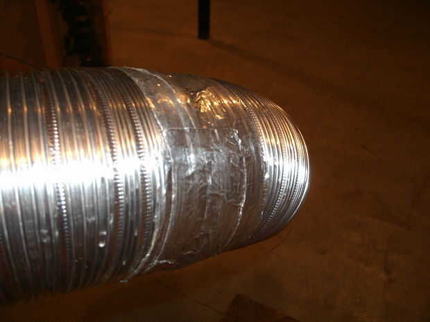 2. una vez que forman el conducto secador en una forma que yo estaba contento con, usé cinta de aluminio para asegurar los dos extremos. He encontrado que usar pegamento y otros adhesivos hará que el toroide a hacerlas.