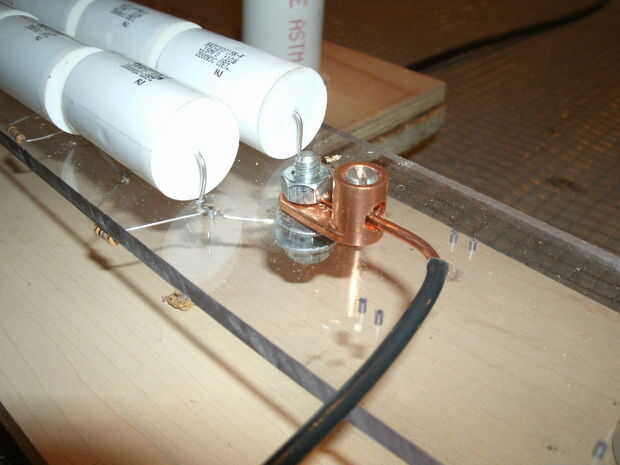 4. un alambre desde el otro extremo de la brecha de chispa irá a uno de los extremos de la matriz de condensador.