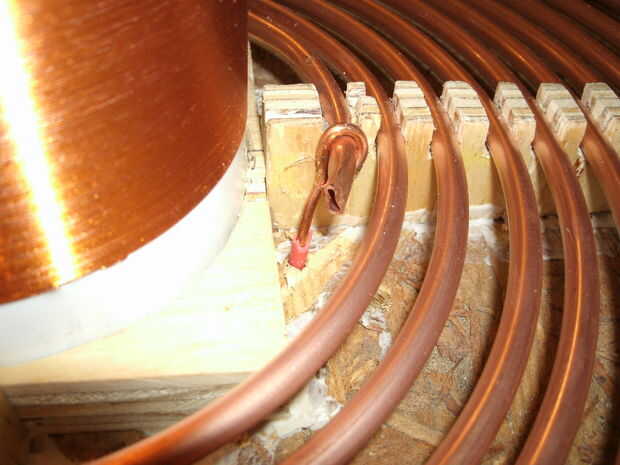 5. un alambre se salen el otro extremo de la matriz de condensador y adjuntar a la vuelta externa de la primaria. Para mi bobina, he encontrado que mejor realizada cuando para 14.