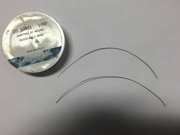 1. Corte 2 pedazos de kanthal aproximadamente 5 pulgadas de largo de bobina