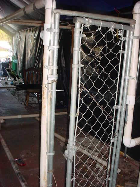 Trabajo con tubo de PVC es como jugar con el gigante KVG (sp), la estructura principal es básicamente 2 rectángulos atados juntos. Servicio de la puerta firmemente en una carrera de perros, el pequeño muro junto a ella estará cubierto en plástico o arpillera