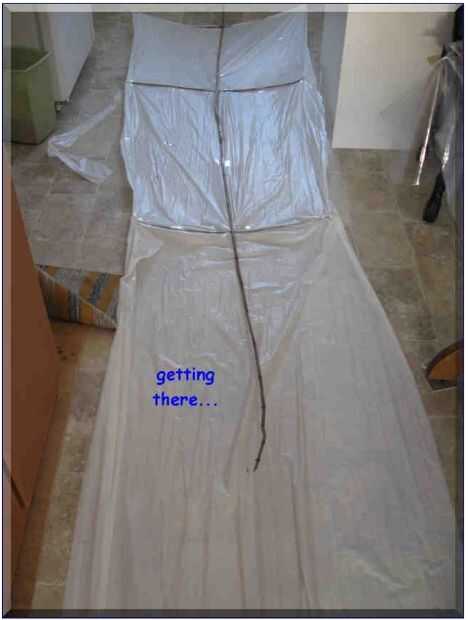 Sólo el último (el borde de fuga) miembro de la Cruz tendrá que fijarse de una manera similar con guita, a la extensión de la cola de la dorsal.