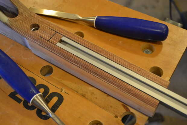 Algunos rifles de la blanco tienen un Anschutz "carril" en la parte delantera - es una manera versátil para montar accesorios como montajes de bípode o apretones de primer plano. El problema con el hardware de carril de Anschutz "genuino" es que son bastante caros - así - sustituir un tramo de vía T que para mis propósitos funciona muy bien.