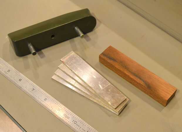 El peine (carrillera) puede elevarse unos 3/4" a 1/8 incrementos utilizando a espaciadores que hice de las existencias de aluminio que tenía por ahí. También hice un espaciador 1/2" madera que es mucho más ligero tener alrededor. El stock de espaciador de aluminio fue corte áspero a tamaño en la Sierra de mesa y luego doble cara grabado juntos en un "bloque" que fue formado usando la lijadora de banda y perforado en el taladro. El acabado final en el aluminio fue alcanzado por lijado en húmedo con 320, 400 y 600 papel mojado/seco de grano. Las piezas fueron entonces peladas aparte, limpiar y volver a apilar en las clavijas de alineación en el peine ajustable.
