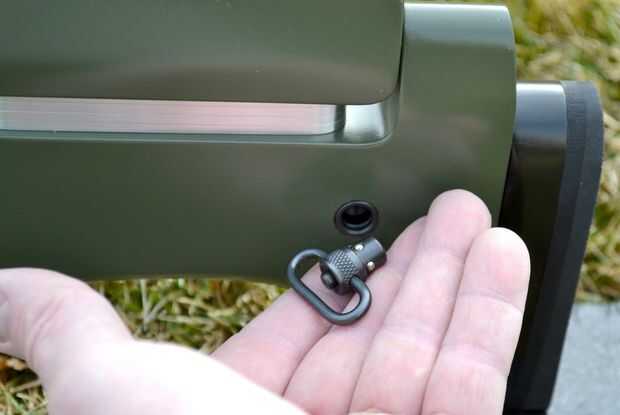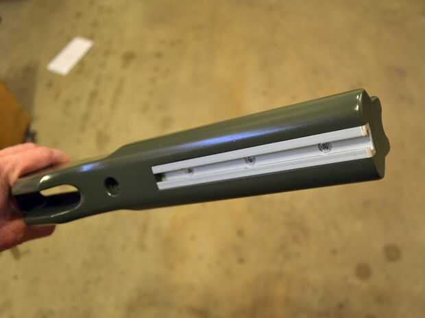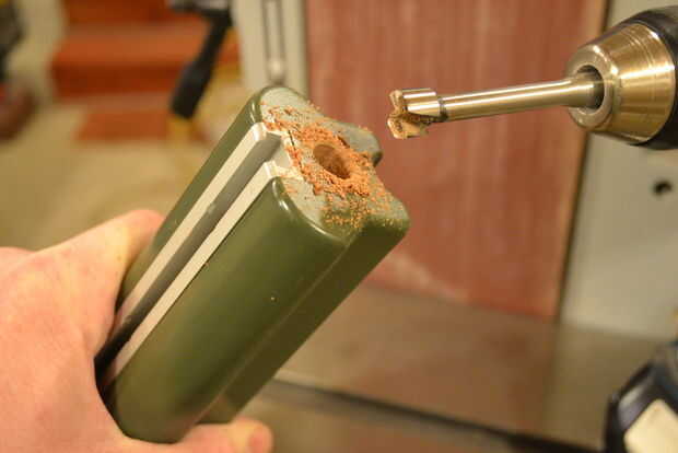 1/2 agujeros fueron perforados en la culata y la culata con una broca Forstner y montajes de Honda de tío Mike QD (Quick separar) se instalaron con epoxi. Montajes QD son grandes que no dejan nada para conseguir enredarse en cuando retire el cabestrillo.