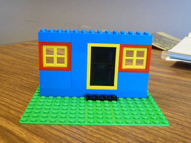 este modelo de la parte delantera de una casa de Lego es rápido y fácil de hacer. Podrá disfrutar de sus hijos lo ha construido en ningún momento.Materiales necesarios:1:16 x pieza base 16 clavija verde7: 2 x 4 piezas clavija azul1: 2 x trozo de peg