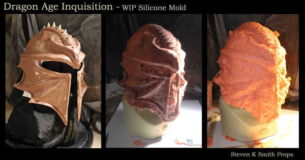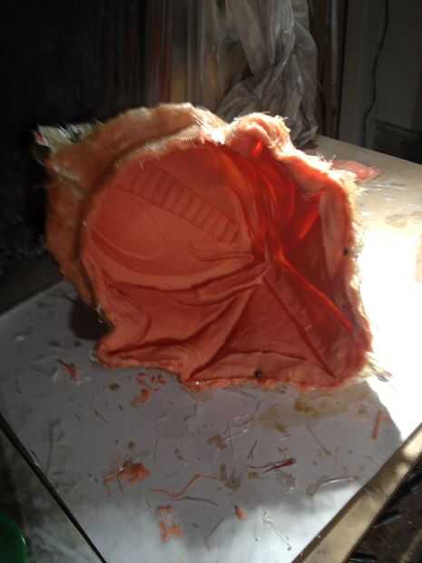 Me gusta usar Smooth-On 25 de rebote para mi molde de chaqueta. Tienes que aplicar esto usando cepillos de chip en 3 a 4 capas. El primero 2 capas siendo la más crucial como estas son las capas de detalle. Capas 3 y 4 sólo están abultando a la silicona no necesitan ser tan bonita. Usted también notará los tapones en la parte superior de mi casco. Los que son para que el molde madre poder bloquear todo el molde de chaqueta. Que mantendrá el molde de silicona forma que desee. Hice el molde madre de fibra de vidrio y utiliza las tuercas de mariposa para mantener juntas las 2 mitades.