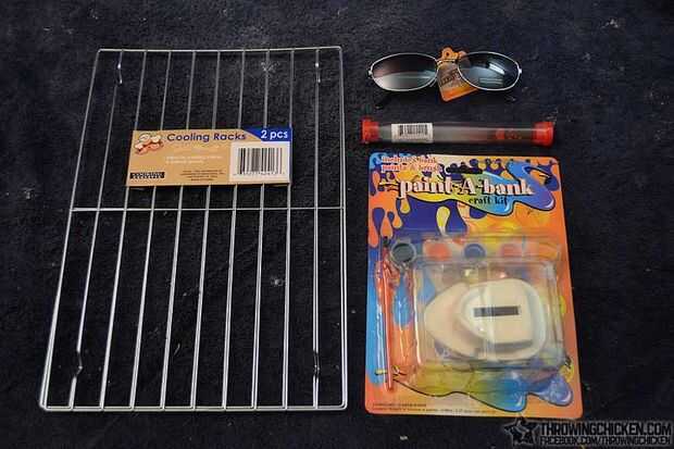 Los dos detalles restantes a fabricar son los soportes mecánicos que rodean la base de los brazos y la luz indicadora superior. Para estas partes fui a Dollar Tree y recoger cualquier basura al azar pude encontrar parecía podría caber la cuenta. La cremallera y las gafas de sol de cocción se utilizará para los brazos, se utilizará el tubo para el archivo de clavo a iluminar la sala, y la pintura desde la orilla del barco son para el piloto encima de la pistola de Portal. (pic 1)