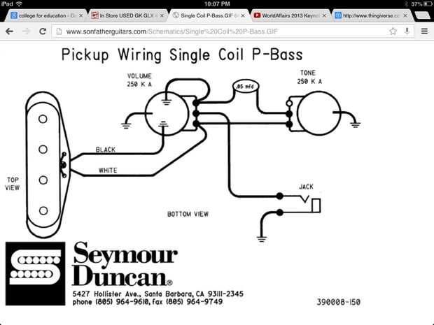 El esquema que se muestra aquí es un diagrama muy básico para una camioneta solo bobina con una perilla de volumen y tono.