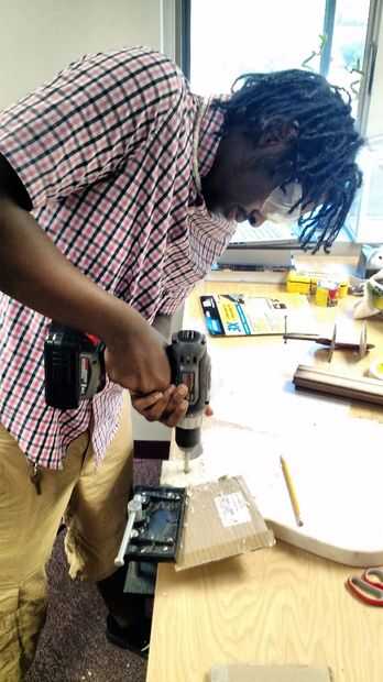 Utilizamos el taladro y router para cortar el cuello bolsillo y recogida la cavidad para la electrónica.