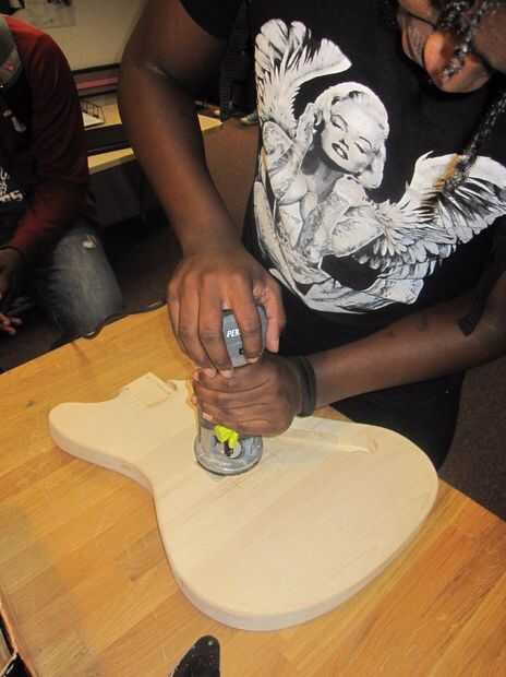 Repintado y cambiar la forma de una guitarra eléctrica de cuerpo sólido
