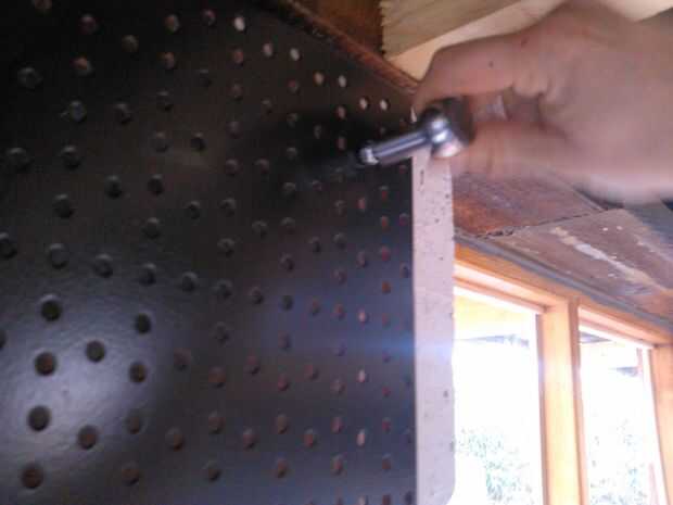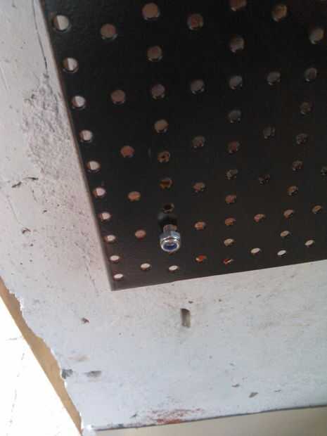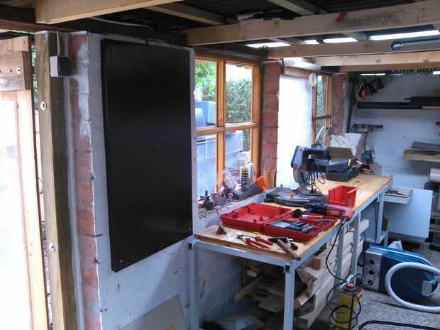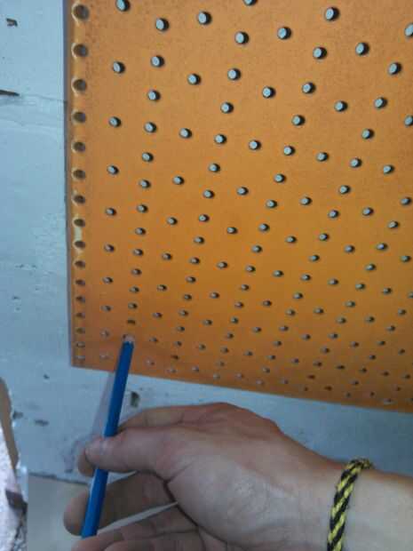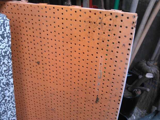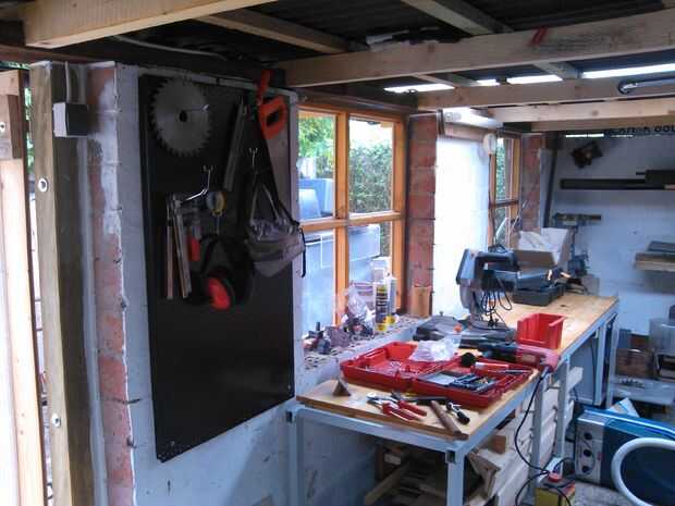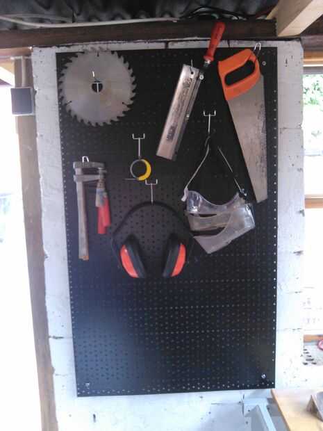 con mis herramientas de mentira todo mi banco de trabajo siempre tuve problemas para encontrar lo que necesitaba. Pero suerte que había dejado unas paredes de metal traseras de un viejo almacén estante, parte cutre naranja oxidado en la primera imagen. Por pintig con negro anti moho pintura y montaje en la pared con unos tornillos con un paso fino de la amenaza en un lado y un áspero uno al otro lado. Si te creo encontrar que esos tornillos usan una varilla roscada con cemento cola especial de la pared para sujetar el soporte mural. después paintig, hold it contra la pared y marque donde taladrar los agujeros y coloque el anclaje de los pernos. Tenía un gancho y esas cosas a la izquierda de la pared de la herramienta que compré para el garaje. Se puede comprar seperatly en la mayoría de las ferreterías. Acabado!!!!!! Ahora mi banco de trabajo se ve ordenado otra vez :) aún cuando no se ve como él cuando usted mira la última foto. Esas cosas tienen que ir mañana. DIY acción todo el día te hace cansado