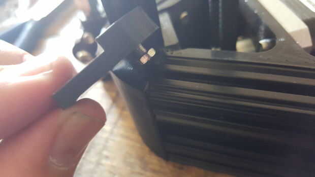 Cerca de cada uno de los rieles verticales se debe un agujero hexagonal en el Vertice inferior clip tuerca allí y resbálelo a través de la OpenBeam