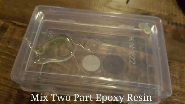 Mezcle la resina de epoxy 2 parte con un palillo de dientes o algo pequeño y desechable.