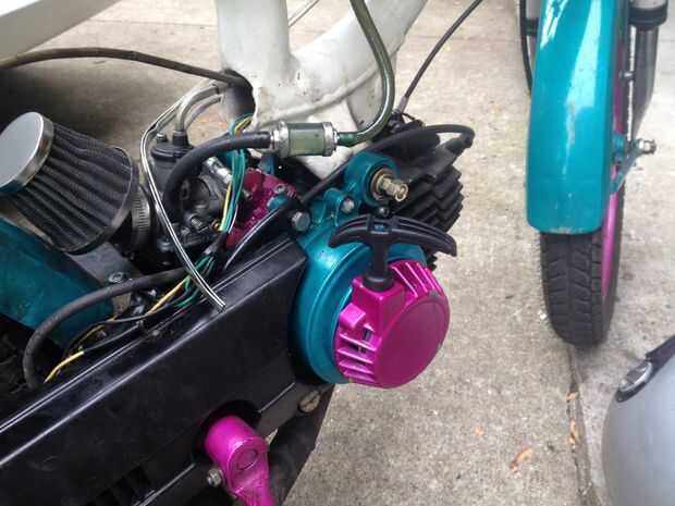El único problema con el comienzo del tirón es que se desgastan rápidamente y necesitan mantenimiento. Mi solución es salir de las garras de arrancador en pero poner los tornillos en la campana para bloquear de participar. Entonces cuando su extracción se rompe se puede quitar los tornillos de fijación y bump arranca su moto.
