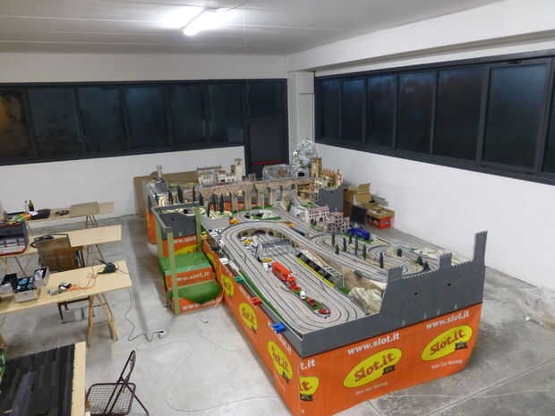 He construido varias pistas sobre los años y éste fue el más difícil. De hecho es doble propósito - una pista de carrera digital de 20 m dos carriles para coches hasta seis a la vez, pero los coches pueden dejar esta sección y visita la sección de carril único de 30m que utilizamos para hacer 50m en todos los rallyes. No puede ser tan aventurero como yo, pero las técnicas y métodos que he usado pueden ser aplicados a cualquier pista de tamaño. Elegir como quieras.