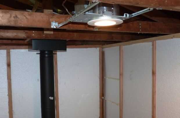 tuve que mover la caja de lo que hoy es la entrada en lo que hoy es el área de almacenamiento. Hay dos grandes postes de madera (aprox. 8 X 8 en) que tipo de apoyan el palmo de las cerchas del techo. Creo que realmente no ayudan mucho a la estructura de soporte ya que ellos sólo eran enclavadas en lugar y llevó a cabo con unos clavos a través de una celosía. Uno de ellos pasé un camino claro para el área de almacenamiento. La caja del disyuntor se monta en él. Incluso más barato ha añadido un LED empotrado techo luz en la sauna, una lámpara de techo barato en el vestuario, techo accesorio en la entrada.