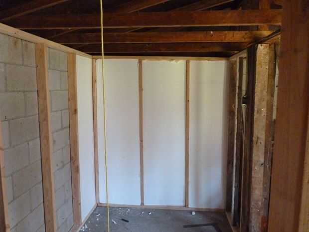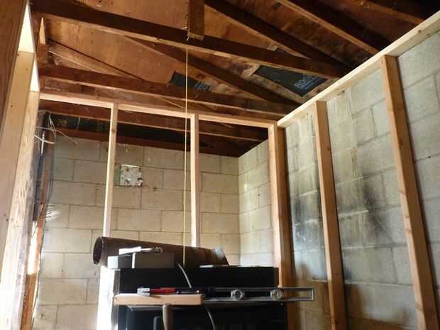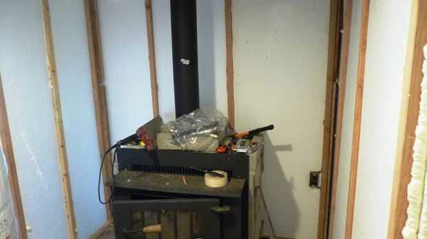 empecé a estructura antes de instalar la chimenea y completado una vez que se instaló la chimenea. Desde que supe que el no se reconstruye y se abarca toda la longitud de cada pared, no era en estricto con el espaciamiento del perno prisionero. Se colocaron aproximadamente en centros de 24". Entre cada viga coloqué 2 en gruesos paneles de espuma de estireno (aprox. valor R-10) y sellar las brechas con gran expansión de la espuma. Encontré que usando una sierra de vaivén con hoja de dientes finos funciona bien para cortar los paneles. Me gustaria saber un poco sobre el valor de R es suficiente. El edificio es 9 en paredes de bloques de cemento grueso izquierda cerca de 1 pulgada de aire entre el aislamiento y el bloque y el revestimiento es de cedro grueso 3/4 de pulgada. Todo esto añade algún factor extra aislante. La estufa es de tamaño más, de tamaño casi Binford, por lo que no anticipo una falta de calor.