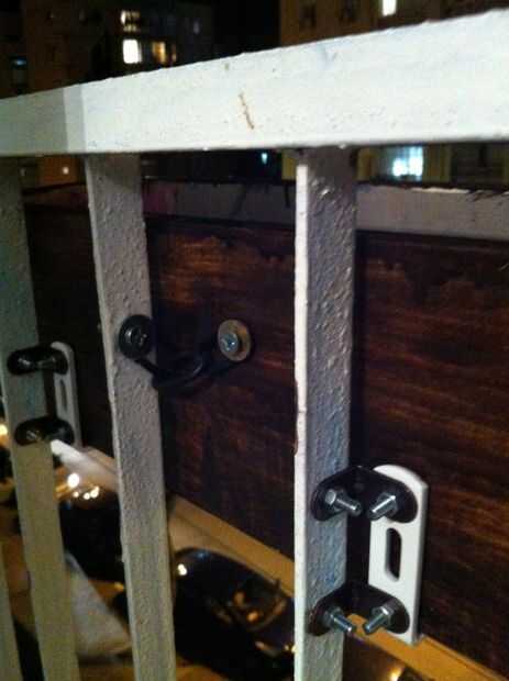 Tomé una cadena muy fuerte y atornillados a los rieles, como se puede ver.