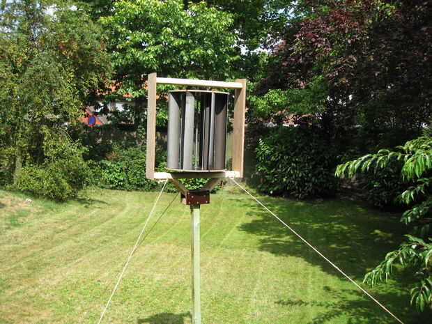 este aerogenerador fue hecha sobre todo de una fotocopiadora desmantelada incluyendo los 2 grandes motores y engranajes.La turbina produce 12Watts en normally(wind10-20km) 10-16v. Cuando el viento sopla un poco more(20-25km/h) puede producir más de 2