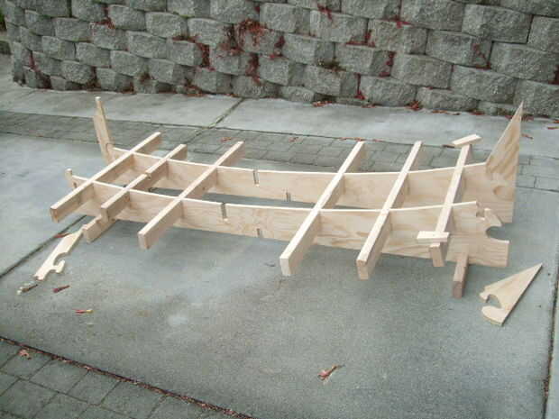 La plantilla en el ShopBot conserva la forma correcta y compatible con el barco, mientras que se está construyendo, para mantener las medidas de diseño exacto. Los planes para el barco encontrará muchas fuentes gratis en internet. Planes están disponibles en muchos idiomas. Una tal fuente es http://www.optiworld.org/Woodguide05.pdf