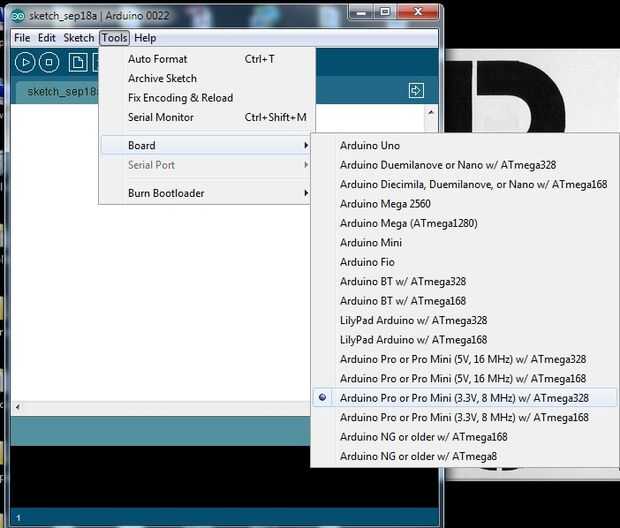 Paso 3: Abrir el IDE de Arduino. Vaya a herramientas > Junta Directiva > Arduino Pro Mini (3.3v / 8 Mhz / 328)