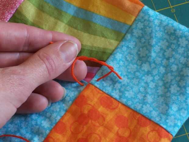 Usando un nudo cirujano, atar el edredón. Izquierda derecha y otra vez. Cinche abajo. Izquierda derecha y otra vez. Cinche abajo. Ver el video de instrucciones claras.
