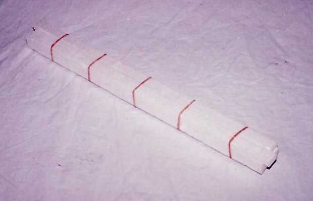 El modelo se ensambla utilizando pegamento de construcción de madera, la colocación del componente determinado por el dibujo original. Gomas de mantener todo en su lugar hasta que el pegamento se seca. Utilizar trozos de espuma rígida para los modelos, pero al construir los cascos de tamaño completo comprar poliestireno expandido blanco, una libra por pie cúbico de densidad. Hay una fábrica que hace espuma no está lejos de mí, para su uso como aislamiento en grandes edificios industriales por el camión, pero se corte de chapas en espesores que necesito, entonces yo cortar los rollos. La espuma no es algo que suele ser enviada a largas distancias, así que usted puede encontrar probablemente una fábrica similar cerca de usted.