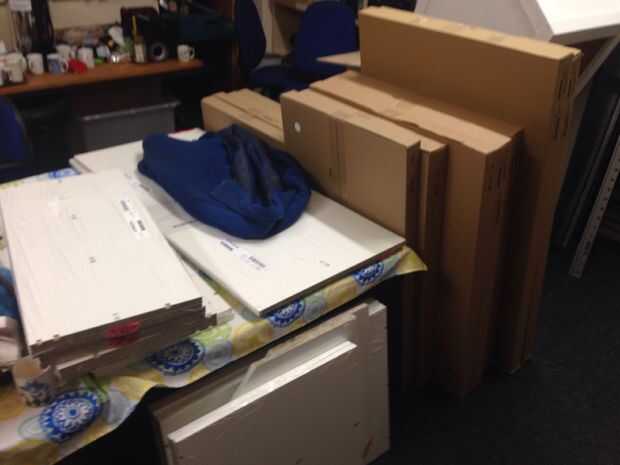 Una vez tenemos nuestro plan, sabíamos exactamente lo que necesita y en qué cantidades. La tienda que visitamos fue cerca pero todavía tardó varias horas para ellos recoger nuestro pedido listo para nosotros... entonces tomó dos coches absolutamente llenados hasta la bandera para volver al centro de la comunidad! Una vez allí, se convirtió el makerspace comando central. Todo fue revisado y luego doble marcada, como apilados con como. Listado de los planes fueron publicado junto con las listas de piezas para cada armario. Todo recto y organizado ahora ahorrado mucho tiempo y estrés al día siguiente, como rápidamente podríamos asignar a cada persona un trabajo, les proporcionará las piezas y herramientas que necesitaban y mostrarles exactamente qué parte sería estar construyendo.
