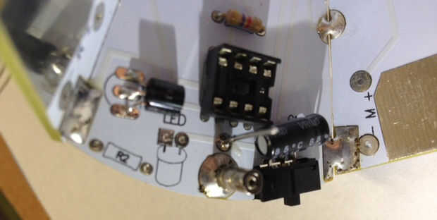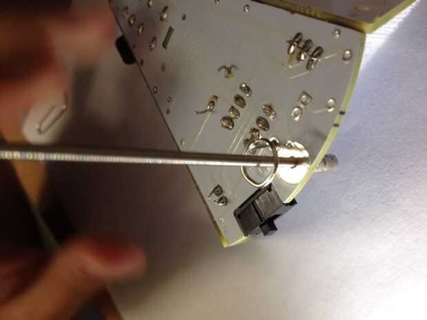 Use clip para hacer el anillo del sensor de cola. Probablemente necesite dos pares de alicates para doblar el clip en un bucle. Esta fue la parte más difícil, excepto cuando sueldan piezas en el lugar equivocado.