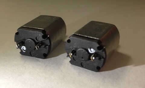 Poner las ruedas de los motores. Limpie los motores con alcohol o ventana limpiador que DSST pega mejor. No quiero tus motores caerse! Corte la cinta para sus motores. Antes de colocar la cinta, asegúrese de que son puntos blancos al lado de uno. Soldadura alambre recortes a los conductores del motor.