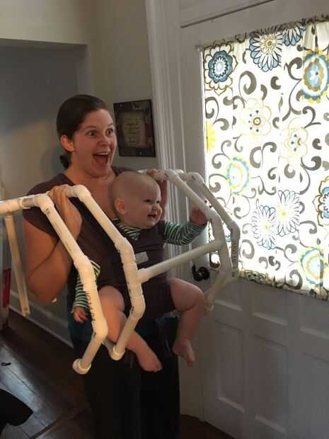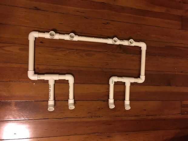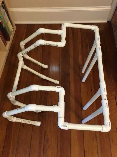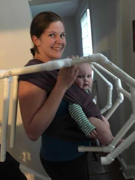 Aquí está la parte importante por llevar a un bebé - construir una jaula para mantener el traje sobre mis hombros y tiene espacio para un bebé. Dibujó un esbozo muy básico y descubierto que podría pedir los conectores de tubo de PVC de Home Depot en línea para recoger en tienda (gran idea como buscar todas las piezas en los estantes se lleva para siempre!)