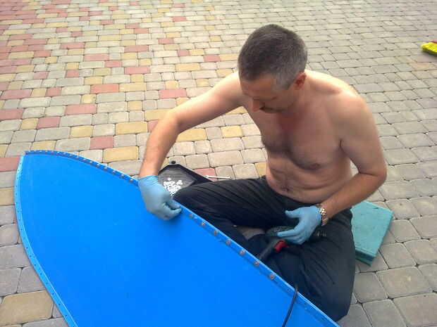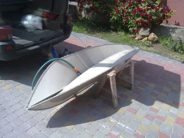 Para generar la necesidad de barcos 4 piezas de polipropileno espesor 5 mm. Elegí 4m largo hojas de ellos a una eslora de 3, 8 m.